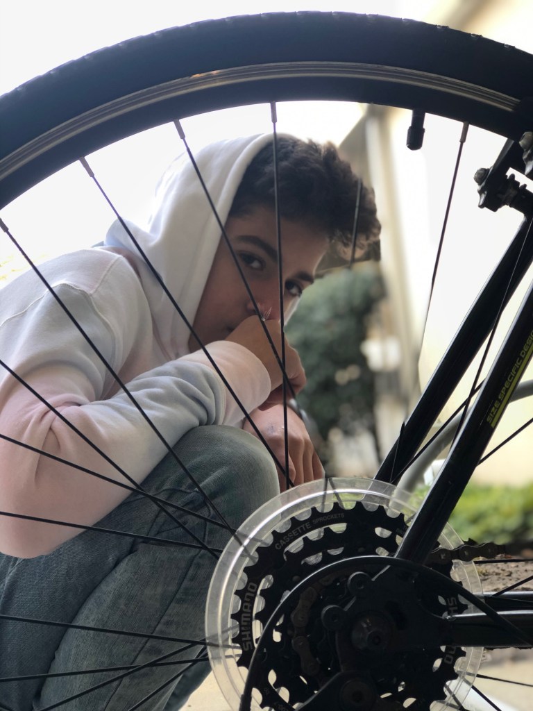 The first picture’s background was to show a story in the back and the story of the person present in the picture (Matt). For the second, although this is foreground, the picture draws attention to the person as well as causes us to question the use of the bike tire.